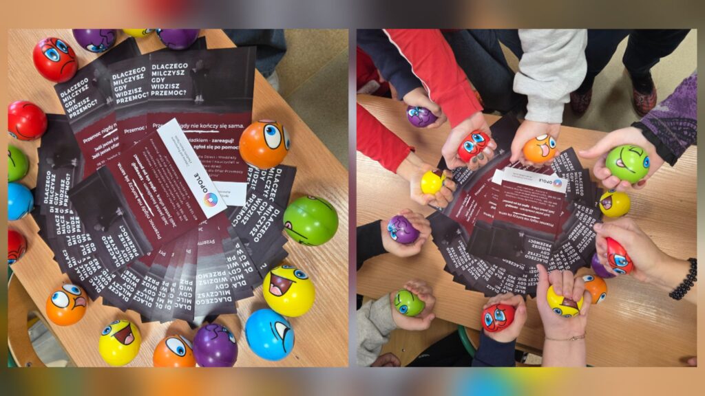 Kolejnym elementem akcji była Ścieżka empatii, w czasie której uczniowie zatrzymywali się przy opisanych sytuacjach z życia szkoły i zastanawiali się, jak mogą czuć się osoby doświadczające trudnych zachowań oraz w jaki sposób można okazać im wsparcie – słowem, gestem lub reakcją. Była to przestrzeń do ćwiczenia uważności na drugiego człowieka oraz rozwijania kompetencji społecznych w bezpiecznych warunkach.